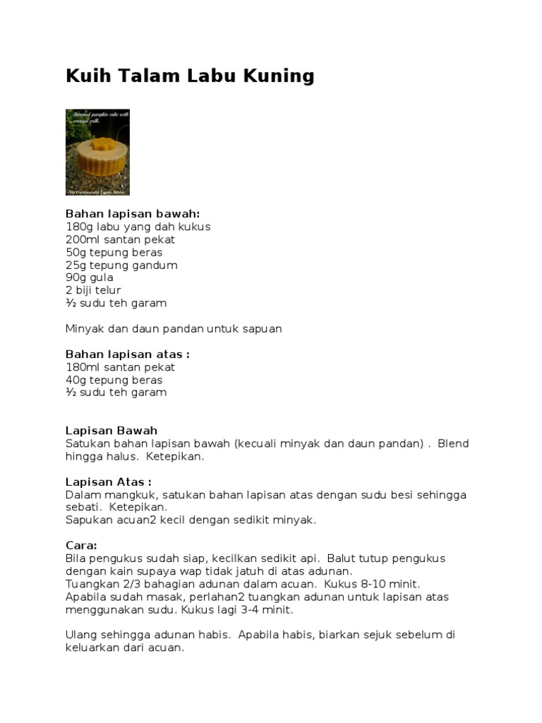 Cara membuat kue talam labu kuning yang enak dan sederhana sangat mudah untuk lebih lengkapnya, berikut ini resep kue talam labu kuning enak, sederhana dan cara. Berikut resep talam ebi dari sajian sedap yang bisa kamu bikin untuk camilan akhir 1/4 sendok teh gula pasir. Resepi talam labu buah kegemaran rasulullah saw mp3 & mp4. Mulai dari talam labu kuning sampai pumpkin smoothie yang sehat dan mengenyangkan. Resep ini merupakan resep talam kedua yang saya (#sukasukaamel) persembahakan.